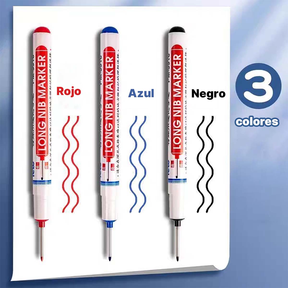 🖊️ **Punta alargada de 20 mm**|Permite marcar en la parte trasera de azulejos o en tablones de madera con agujeros profundos, trazando en un solo paso sin necesidad de cambiar de marcador.