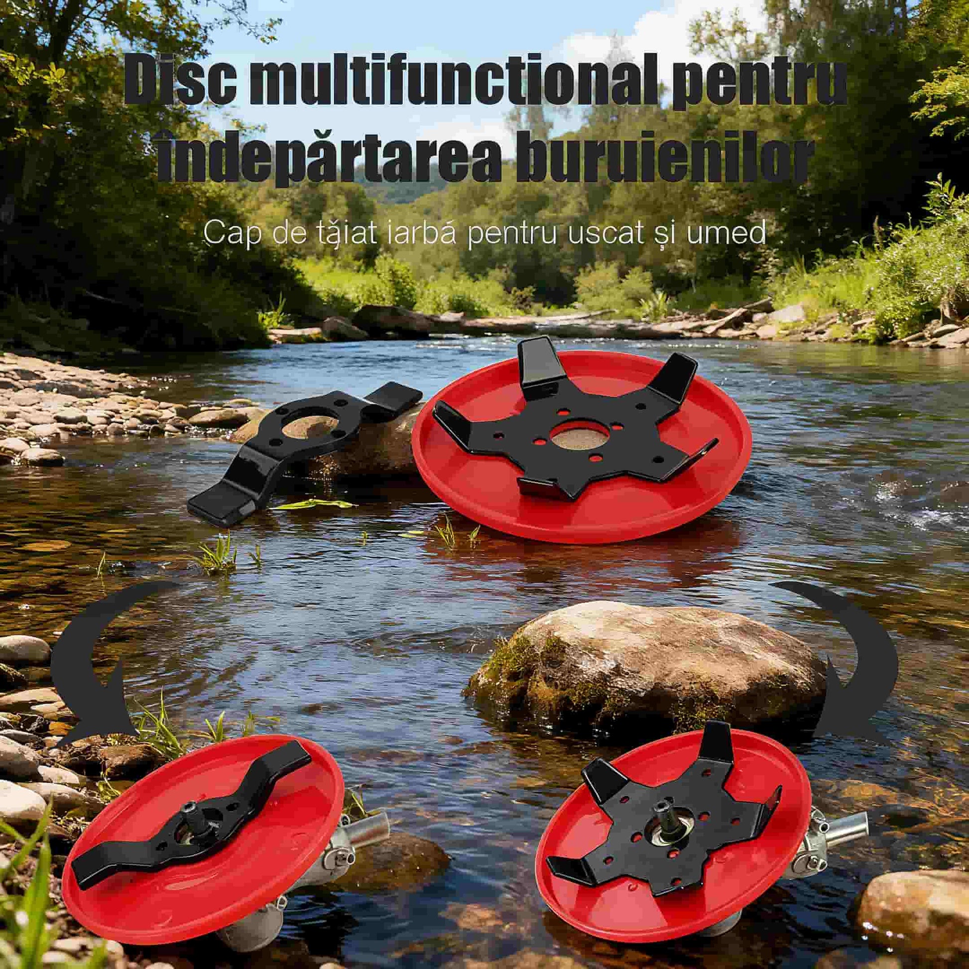 Disc universal multifuncțional pentru cosit: cap de tăiat pentru iarbă, buruieni și tufișuri, compatibil cu mașini de tuns gazonul, accesoriu pentru uscat și terenuri umede de orez, cap de tăiat pentru lucru pe uscat și apă.