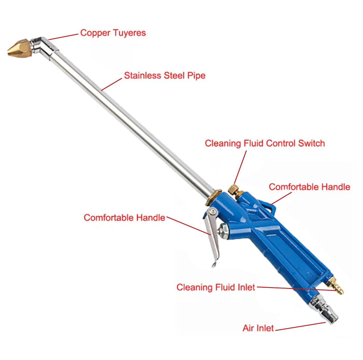 Pistol de curățare cu aer comprimat, cotit și prelungit, pentru curățarea motorului, spălătorii auto și îndepărtarea prafului